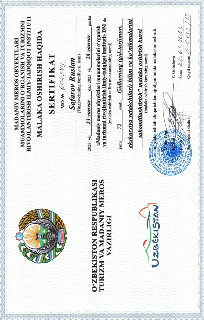 Our company’s tour operators are all unique, yet they share one key quality — an outstanding level of professionalism. They combine meticulous attention to detail with deep knowledge of tourism regulations and a genuine passion for Uzbekistan.